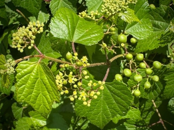 Native grapes including: summer grape (Vitis aestivalis), fox grape (Vitis labrusca), and frost grape (Vitis vulpina).