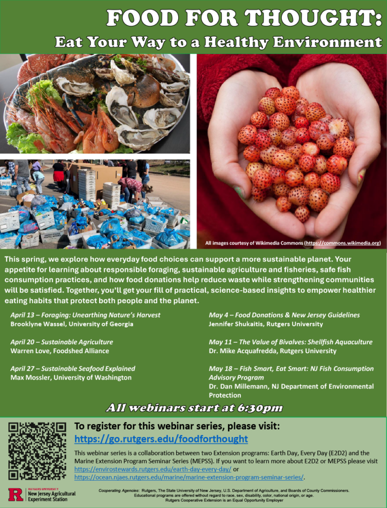 PDF of Flyer: https://salem.njaes.rutgers.edu/wp-content/uploads/2026/04/Spring2026E2D2Flyer.pdf Registration site: https://go.rutgers.edu/foodforthought Thank you for your interest in the Rutgers Cooperative Extension Earth Day Every Day Webinar Series. Review the…